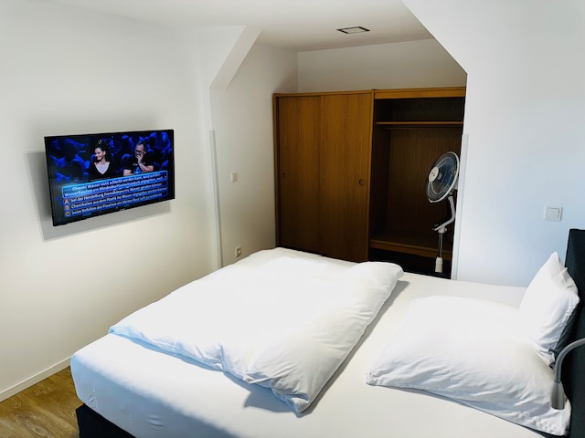 Ein 139 cm großer Smart-TV übernimmt das Entertainment im Wohnzimmer und ein 109 cm großer Smart-TV im Schlafzimmer. Eine Garderobe sowie ein Ess-/Arbeits-Ausziehtisch für 4 Personen stehen ebenfalls zur Verfügung.