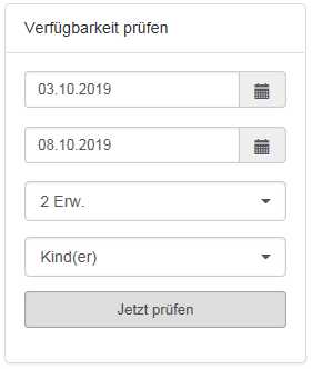 Die Kammern und das Komfort&Wellness-Apartment sind unter den unten stehenden Buchungs-Links zu buchen. Von dort werden Sie direkt auf unser Buchungsportal "buchen.travel" geleitet. Dort können Sie unter "Verfügbarkeit prüfen" Ihre gewünschten Reisedaten eingeben und dann auf "Jetzt prüfen" klicken und anschließend werden die bei Verfügbarkeit vorhandenen Gästezimmer bzw. des Apartments mit dem Gesamtpreis angezeigt. In diesem Preis sind Bettwäsche, Handtücher (sowie die Endreinigung beim Apartment in Höhe von 110 €) bereits enthalten.
